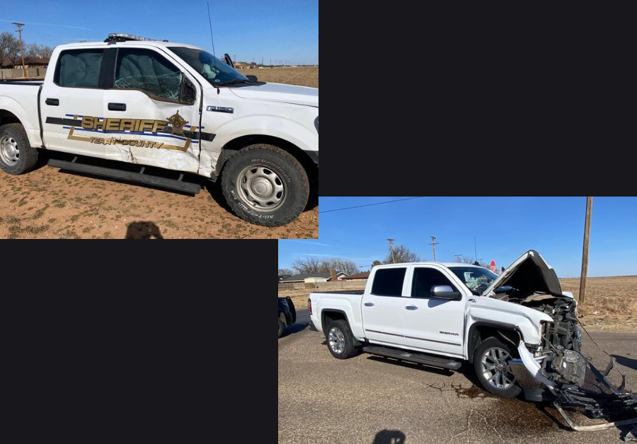 The next accident happened around 3:35 pm. It took place at the intersection of South Cedar and East Webb. A Sheriff’s Deputy was traveling south on Cedar responding to a grass fire. The deputy in sheriff department cruiser went through the intercession and was t-boned on the passenger side by a late model white four door GMC Sierra. The GMC ended up facing south on the road just south of East Webb. The driver of the GMC was taken to BRMC with unknown injuries. The Brownfield PD, Brownfield Fire & Rescue, BRMC EMS, Terry County Sheriffs Dept., and TxDPS responded to the scene. The TxDPS would end up being the investigating department for the accident due to a Terry County deputy and a Terry County unit being involved in the accident.
