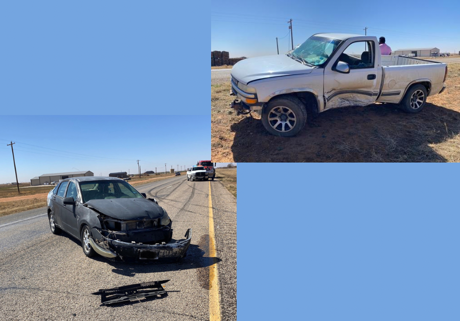 Through the fires, there were also two accidents during the day. One happened around 11:00 am just south of Wellman on US 62/385. According to preliminary reports, a person driving a dark color Ford Focus driving in the left northbound lane and was passing a white late model Chevy single cab pickup, also driving northbound in the right lane, lost control and hit the left driver side door of the white Chevy. This caused the Chevy to slide into the median and facing north. The Ford would end up stopping in the left lane facing west. Drivers and passengers were treated on scene. Terry County Sheriff’s Dept. Wellman Fire Dept., Brownfield Fire & Rescue, BRMC EMS, and TxDPS responded.