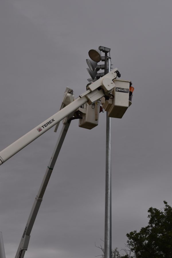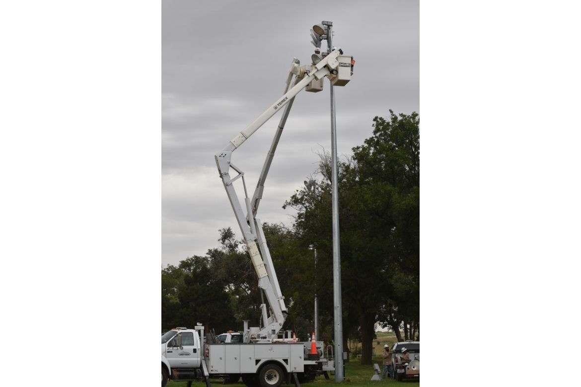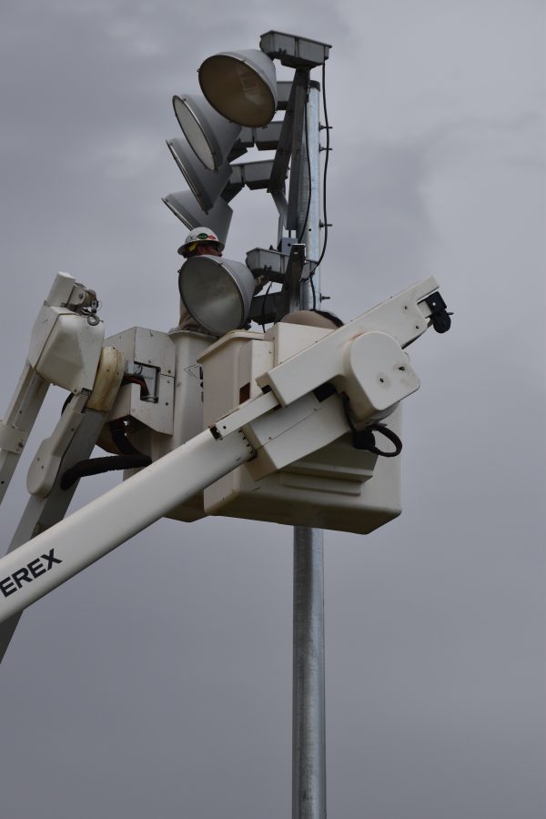 The field is coming along and this week, the City Utility guys were busy installing lights on the sides of the field.